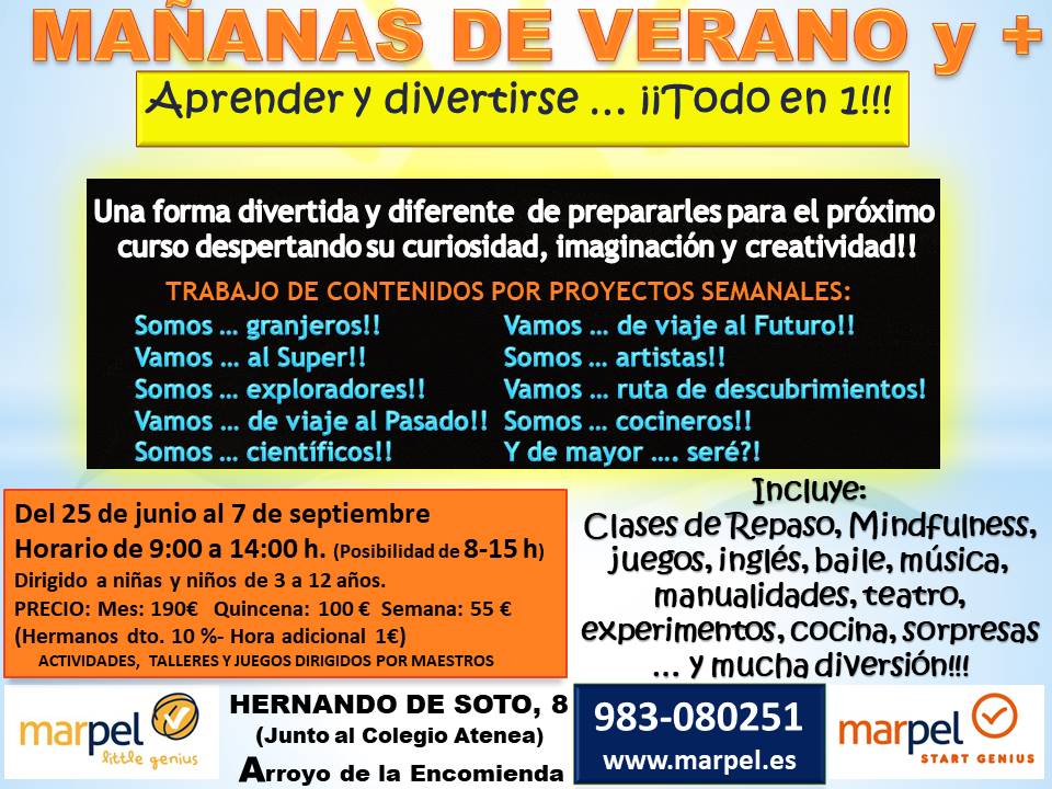 Ya podéis reservar plaza para nuestras MAÑANAS DE VERANO Y+, una forma diferente y muy divertida de prepararles para el próximo curso!!! repasando las diferentes áreas lengua, matemáticas, ciencias, inglés, plástica, …