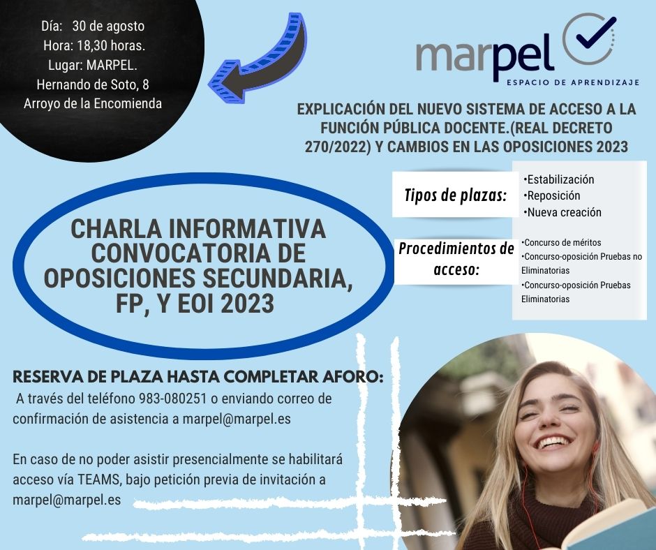 CHARLA INFORMATIVA R.D 270/2022 Y CAMBIOS EN LAS OPOSICIONES 2023 Públicado en 24 agosto, 202224 agosto, 2022 por Centro de Estudios MARPEL