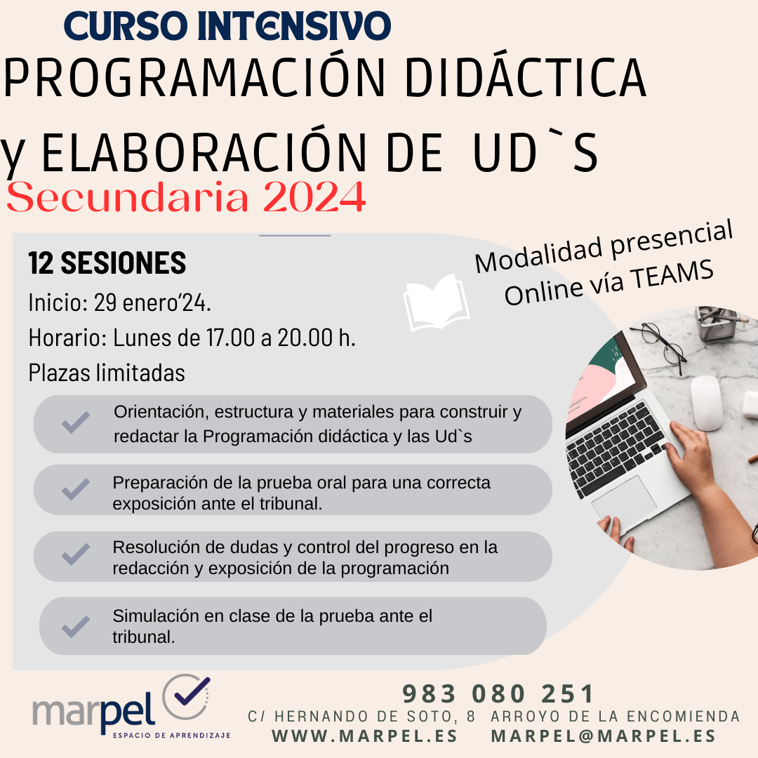 Publicado el Oposiciones, Profesores de secundariaEtiquetado con CURSOINTENSIVOPROGRAMACION, OPOSICIONESSECUNDARIA2024, PREPARADORPROGRAMACIÓNDIDÁCTICA, programaciondidactica, UNIDADESDIDACTICAS