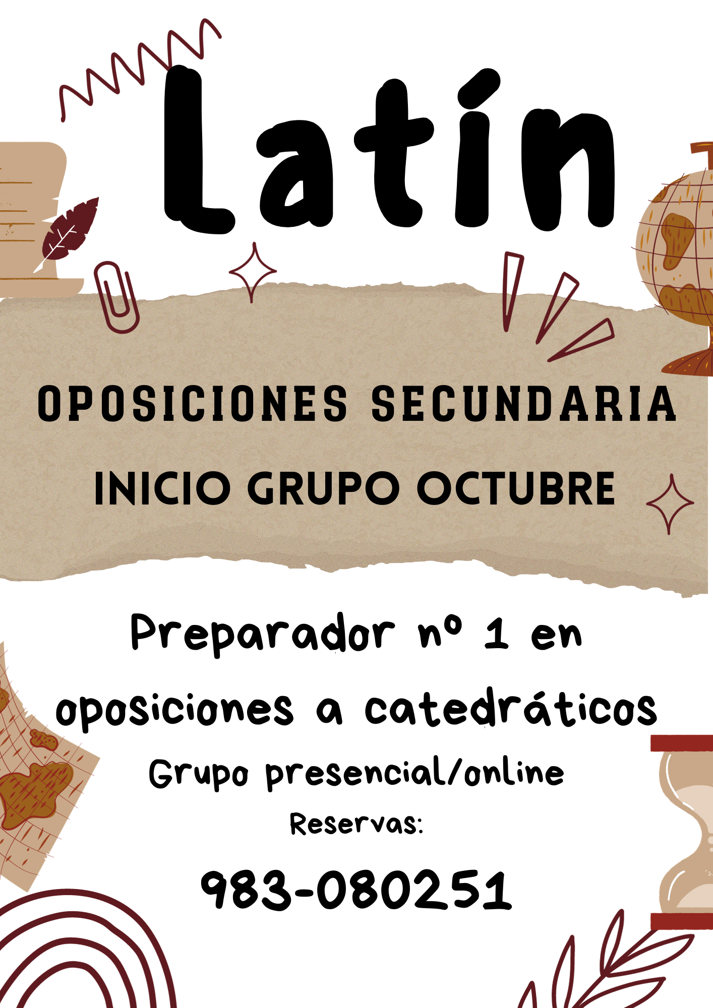 Aún estás a tiempo de poder comenzar con la preparación de las oposiciones a LATÍN, nuestro preparador ya ha comenzado con el grupo de latín, las clases son los miércoles de 16.30 a 20.00 horas, puedes venir presencialmente a nuestras instalaciones o seguir las sesiones online a través de TEAMS.